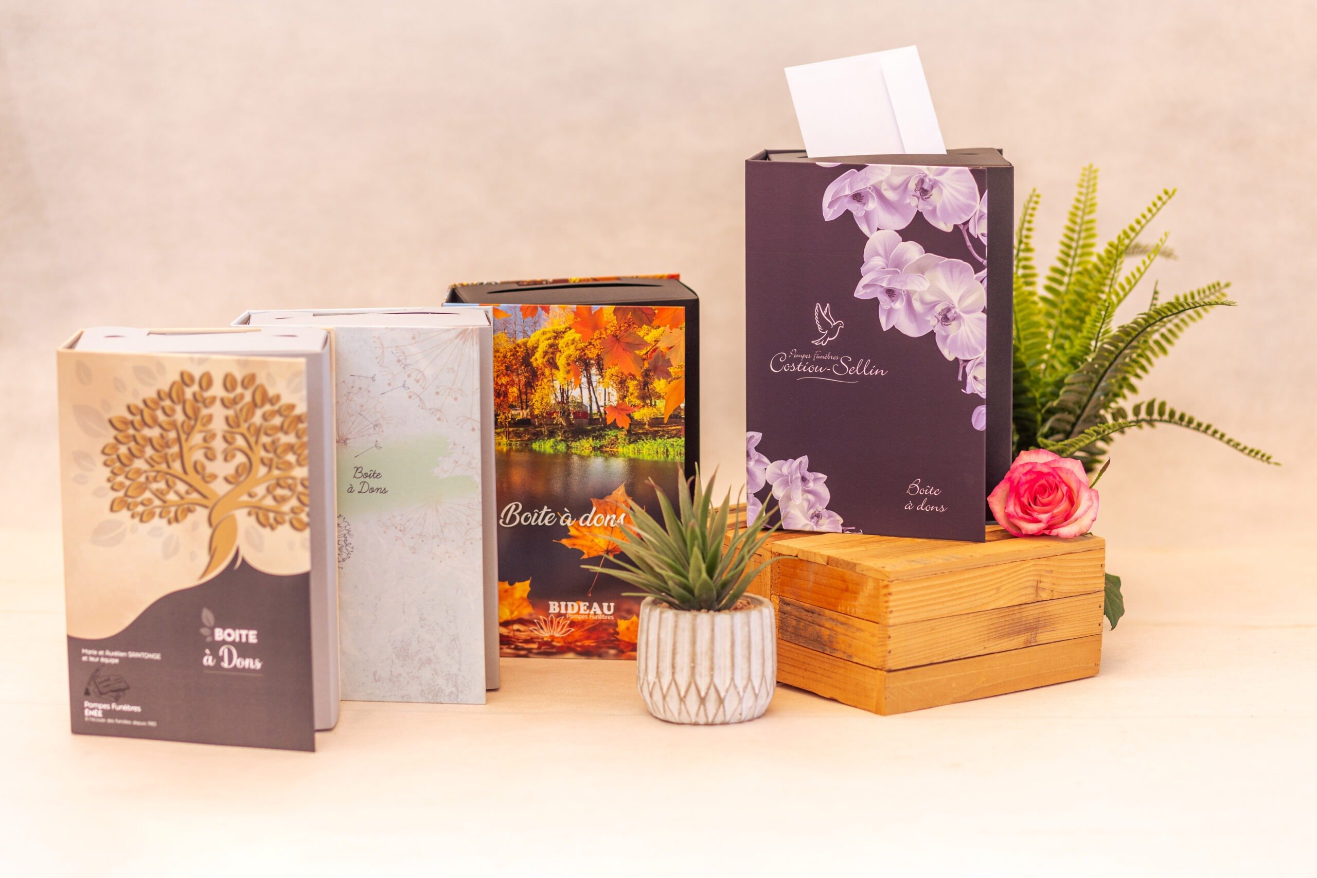 Les boîtes à dons offrent une manière respectueuse et solidaire d’honorer la mémoire d’un être cher. Placées lors des cérémonies funéraires, elles permettent aux proches et aux invités de déposer des contributions financières au profit d’une cause, d’une association ou d’une œuvre caritative choisie par la famille du défunt.