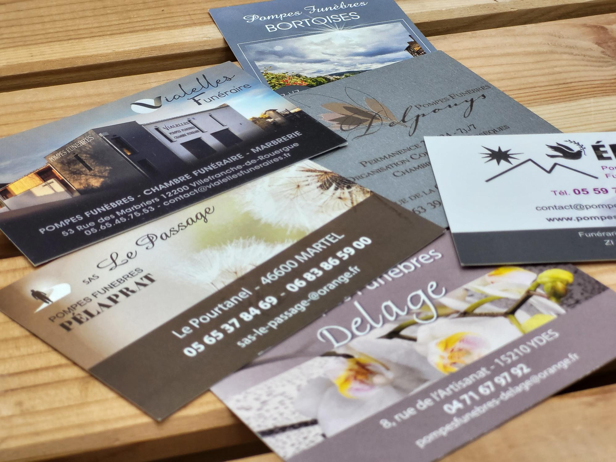 Parce que chaque détail compte, nos cartes de visite sont pensées pour refléter l’image et le professionnalisme de votre entreprise funéraire. Imprimées sur des papiers haut de gamme, elles offrent un rendu soigné et durable, à la hauteur de la qualité de votre accompagnement.