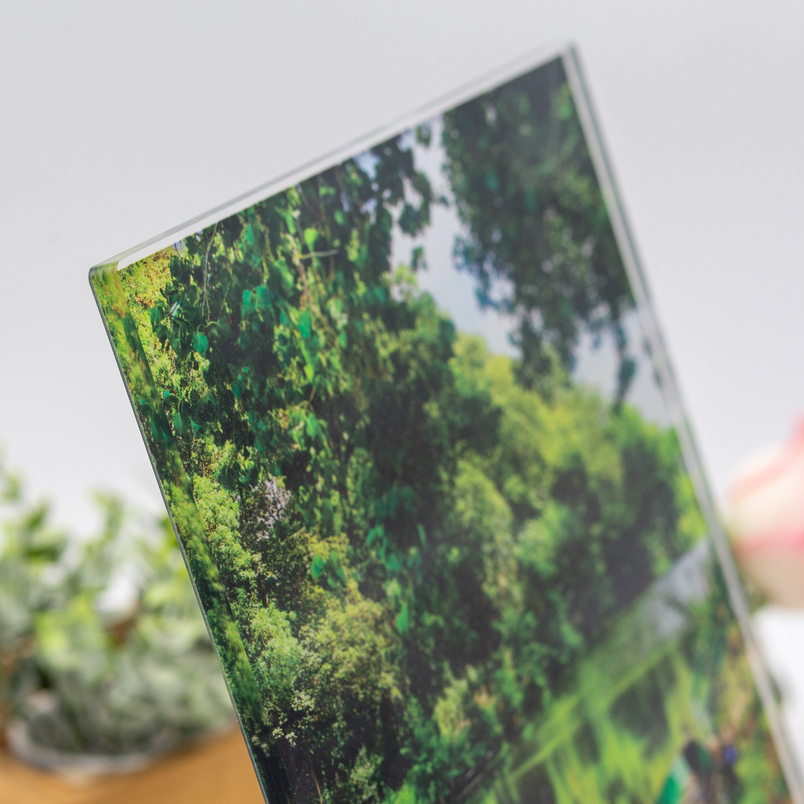 L’altuglass que nous utilisons pour nos impressions photo, est une matière synthétique à base de résine transparente assimilable visuellement à du verre. Ce support ne craint ni le gel, ni les variations de températures. L’impression numérique haute définition réalisée dessus, nous assure une restitution des photos éclatantes, lumineuses et réalistes. De plus, afin de pérenniser le visuel, nous prévoyons au dos de l’impression un film de protection arrière en polymère transparent.