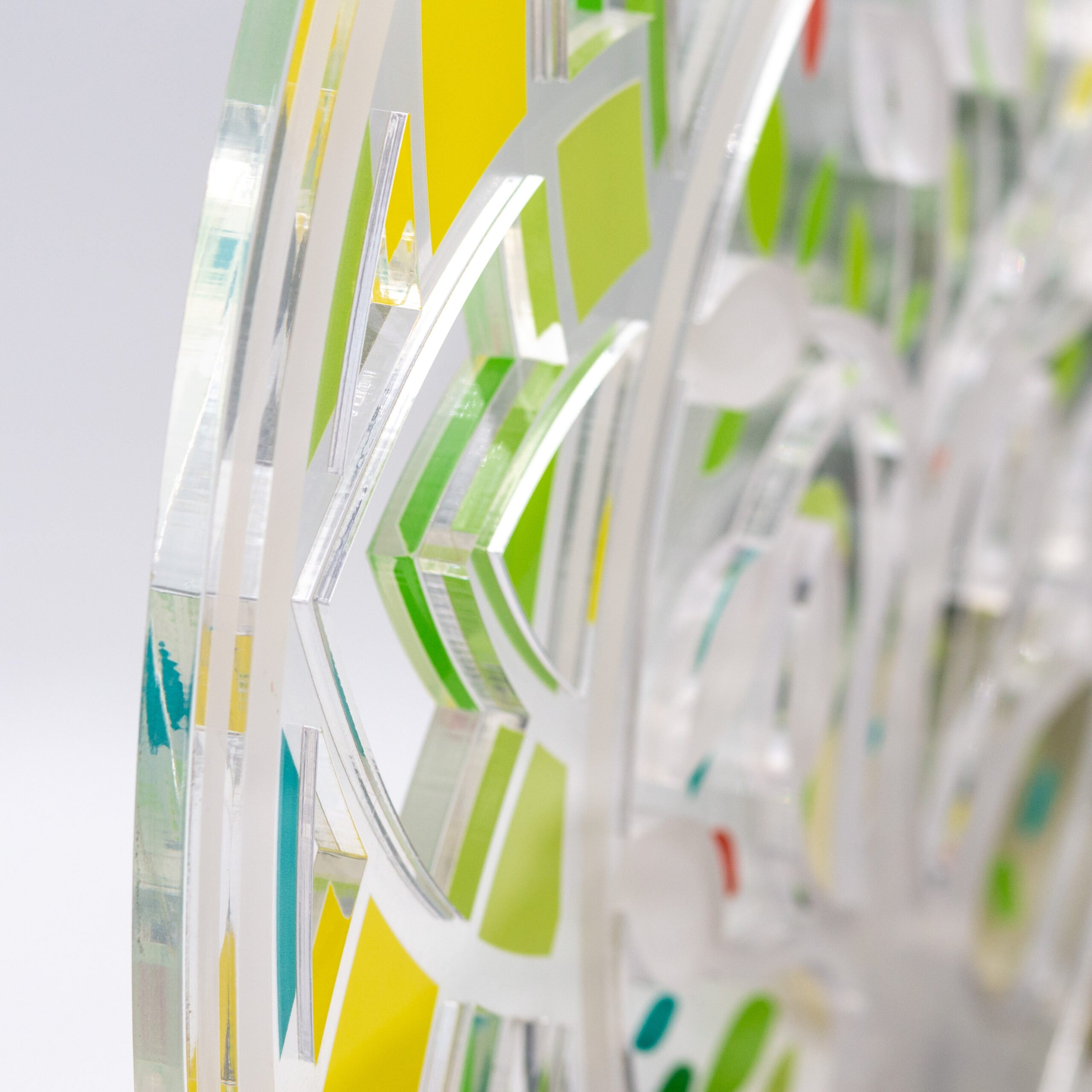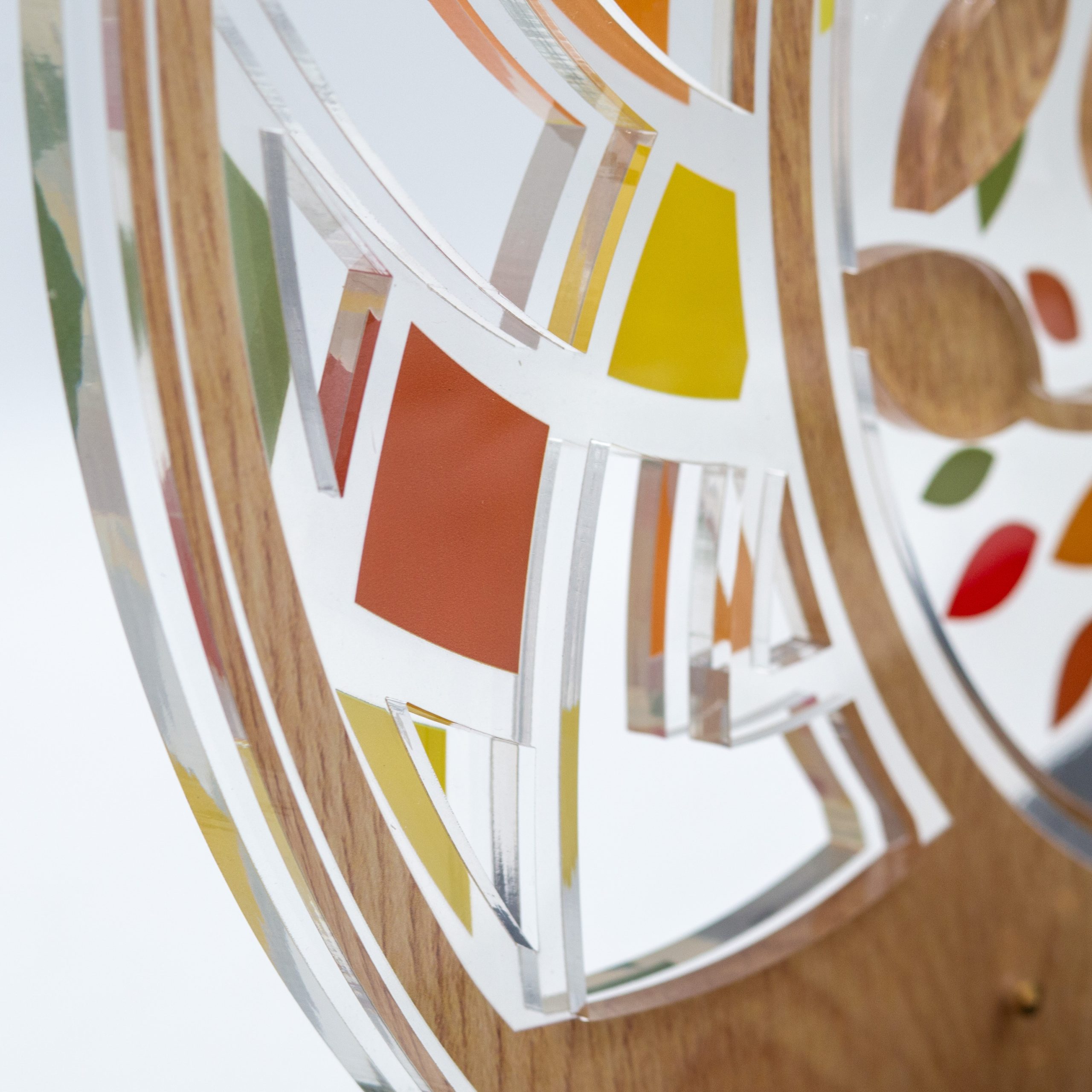 Le Grand Arbre de Vie est conçu à partir de deux plaques en PMMA de 8 mm superposées, offrant un effet de relief élégant et contemporain. L’impression haute définition (HD) assure des détails nets et des couleurs vives. Ce design est soutenu par un socle en granit de 40 x 30 cm, garantissant stabilité et durabilité, même en extérieur.