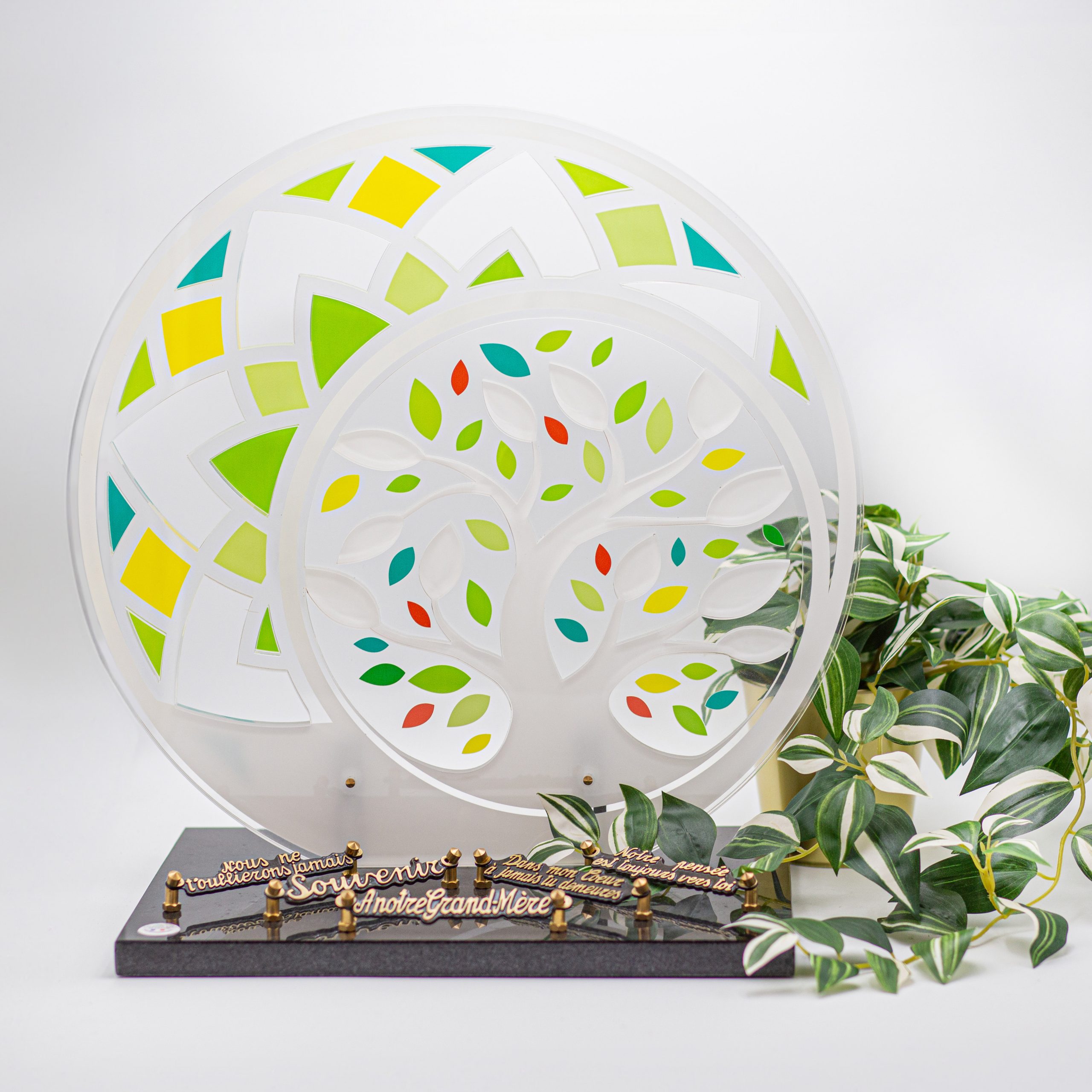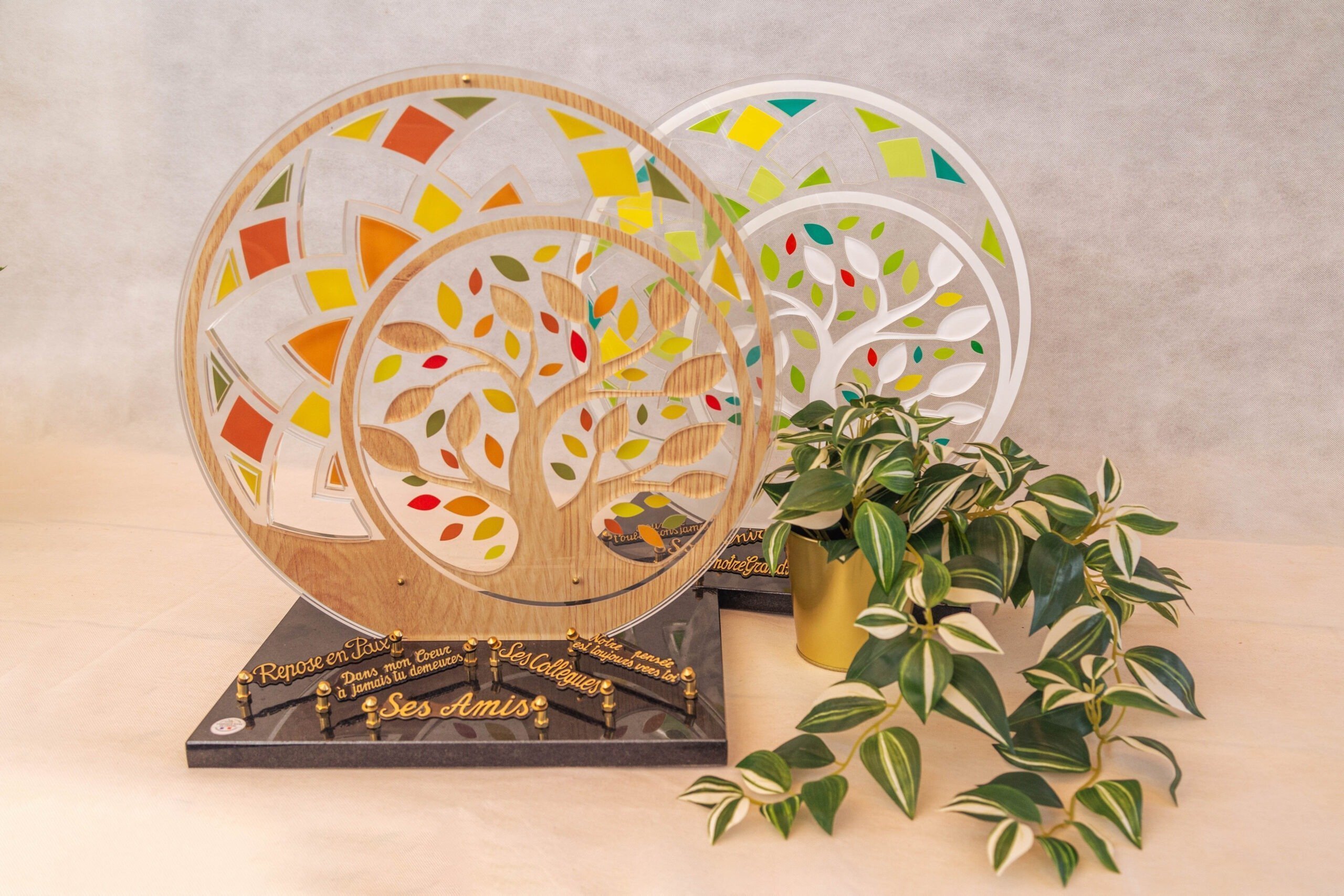 Modèle Grand Arbre de vie, une plaque funéraire moderne et colorée
