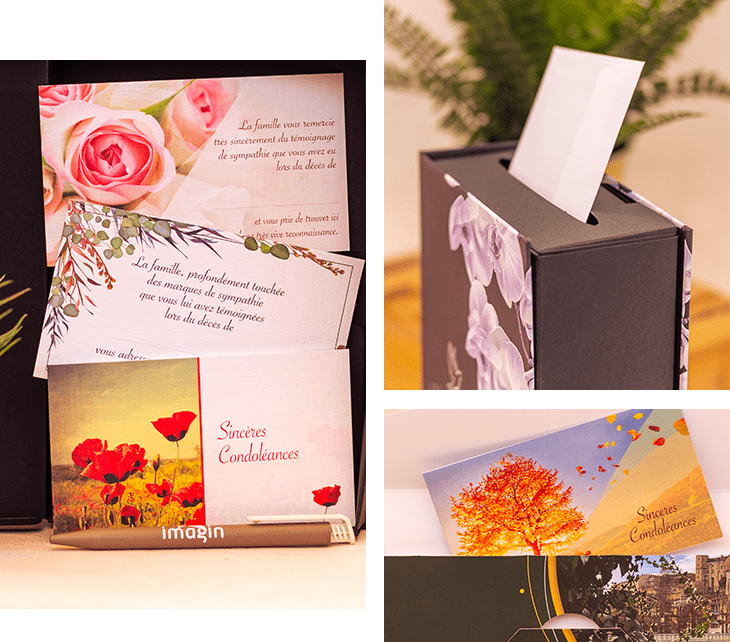 La papeterie funéraire Imagin Funéraire est à la fois un support de communication et un symbole d’affection. Elle accompagne la famille et les proches dans toutes les étapes du deuil, en apportant douceur et dignité.